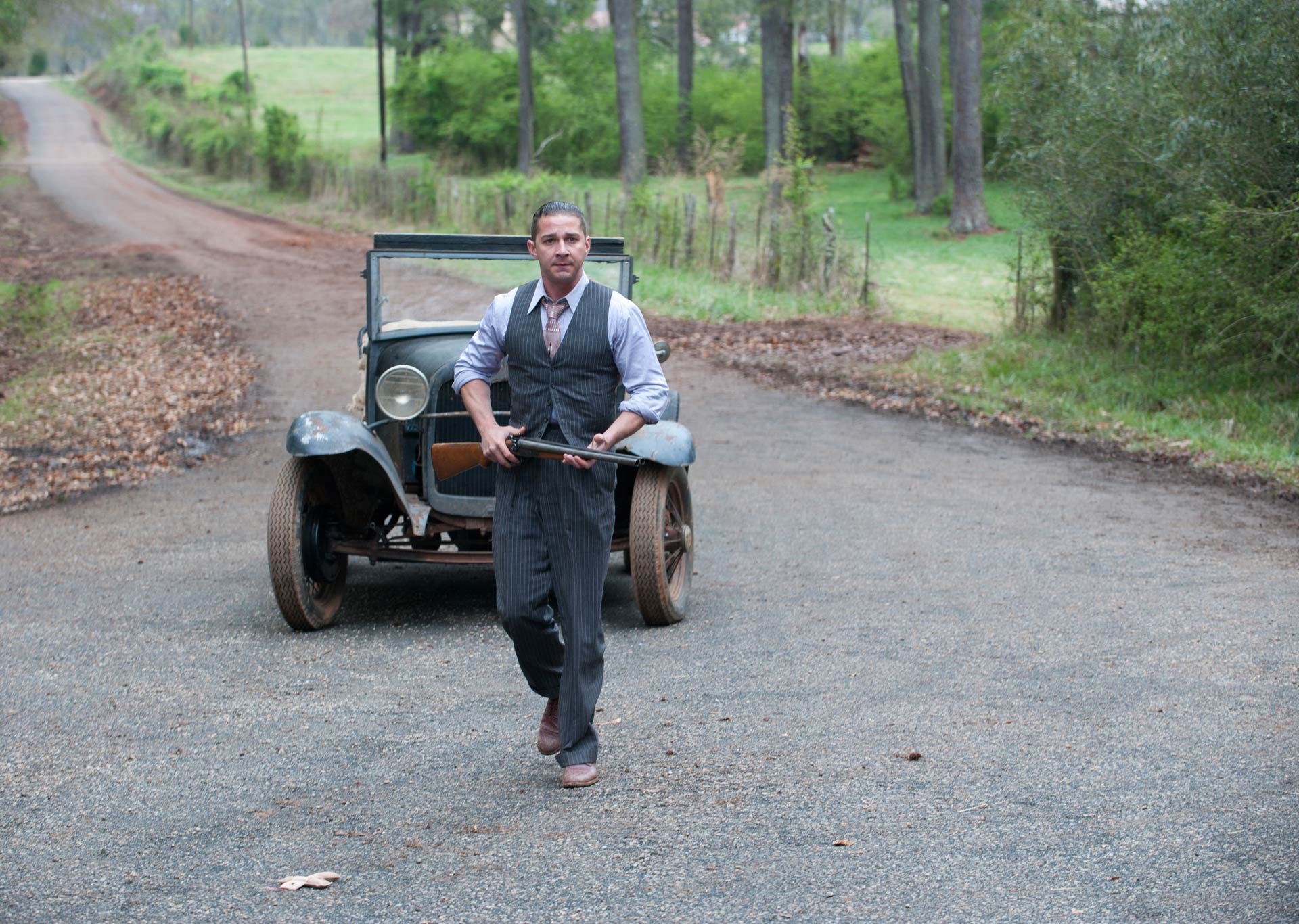 universal existence. His newest film, Lawless, makes the violence front and center, with every moment, from the opening scene to the final gun fight, being about taking the life of another animal at any means necessary. At one point, after his weaker brother Jack has taken a beating, Forest Bondurant says, “It’s not about the violence, it’s about the distance a man will go.” A defined theme with the promise of layered looks at masculinity. However, Lawless wants to be a film that its not and an array of splintered plot threads undercuts virtually every textured moment that could have shined through.