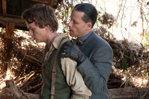 between the characters are. For instance, Gary Oldman’s gangster never settles into a concrete place within the film. He seems a famous mob boss with a thirst for killing and illegally making money. How or why he shows up in this town only makes sense when you realize that this is the county with the best moonshine in the world. Yet, Bannister’s existence never matches the puzzle of the many other subplots at play. Oldman’s ability to be interesting manages to save his scenes from being completely out of place or laborious.