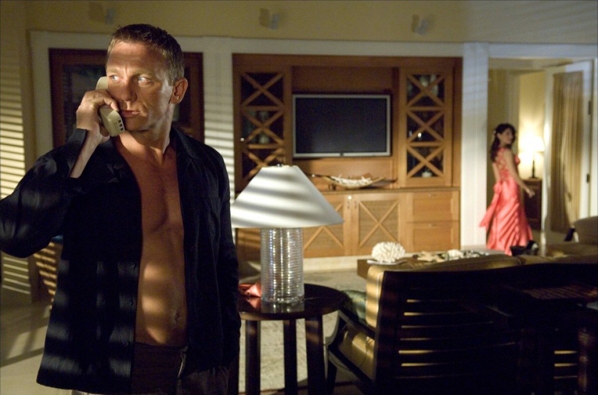 game and chasing a man with a bag full of loot through every nook and cranny of the village. Turns out, as the plot will very slowly unravel, this money is linked to a terrorist attack at the Miami airport. The terrorist has bet against the market and anticipates that his bombing will inflate his profits. Not accounting for Bond, the attack goes awry in a firework show of narrow escapes. MI6 then traces the terrorist to a high stakes poker game, where the villain hopes to win back the money he’s lost in the failed explosion. Bond gets recruited as the player to take him down at the game, only now he’ll have the help of a beautiful accountant named Vesper Lynd. Sound like a boatload of plot? That’s the short version, and leaps in logic abound.