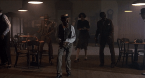 up with the mob at Chicago’s famed Cotton Club. After saving the life of a gruesome criminal named Dutch Shultz, Dwyer gets taken into Shultz’s dangerous circle. His first job is to take care of Shultz’s wife, Vera, (a la Vincent Vega and Mia Wallace) as a way to become a closer part of the “family.” Dwyer reluctantly starts to fall for the beautiful woman – played with an adolescent sexuality by the cherub-faced Diane Lane. Stuck without his freedom, and increasingly frustrated by his lack of a musical career, Dwyer connects with another mafioso – the Cotton Club owner Owney Madden – and winds up going out to Hollywood to be a star. Breaking free from the psychotic gangster, Dwyer plays mobsters in the movies. Successfully becoming an individual, Dwyer eventually gets to play the Cotton Club and Shultz gets his comeuppance at the hands of Madden’s gang.