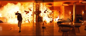 the walls burning around her she triumphantly, and very viciously, does away with her foe. The visual of watching the building crumble like a stake of dominoes as the two partners battle their enemies in disconnected portions of the edifice had the spectactacle appeal that a climax of this sort should. It’s all fire and brimstone (quite literally), with narrow escapes, and a glorious coming together in the end. While its a mild letdown when Bond leaves the squirrelly villain in the middle of the desert, the moment does work to show Bond’s efforts at getting better at his murder addiction.