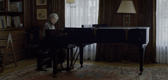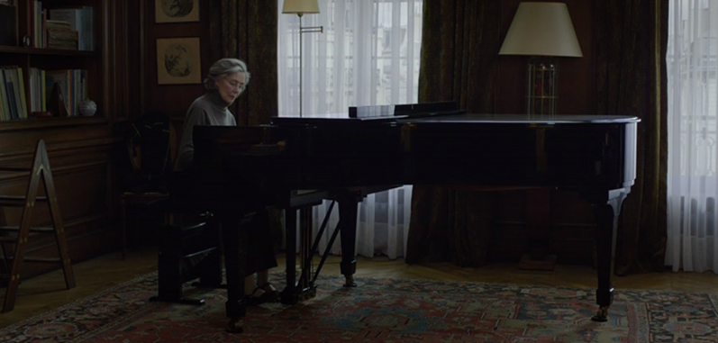 desperately to communicate something to me, but only a sound resembling, “Mom… mom…” would come out. I got chills as I watched Emmanuelle Riva’s Anne suffer through the same mumbling struggles. Anne’s nurse explains that this sound is just an easy reflex, not to be over-thought. A poetic act of biology, the word we learn to speak first as babies is also that which we last speak before death. It’s also a reminder of the most loving person many of us ever have in our lives: mom. Watching Jean Trintignant suffer through his own slowing motor skills, I was reminded of something we often forget: growing old is incredibly difficult. Not only do we slow down, but those around us have moved on, living their lives, raising their own children, and dealing with their own baggage. They simply don’t have time to care.